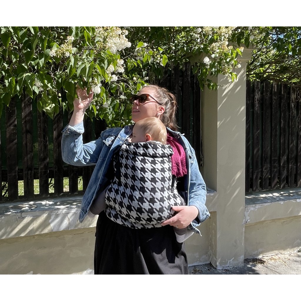 Nosítko je ušito z vyprané šátkoviny a tudíž není potřeba prát před prvním použitím.