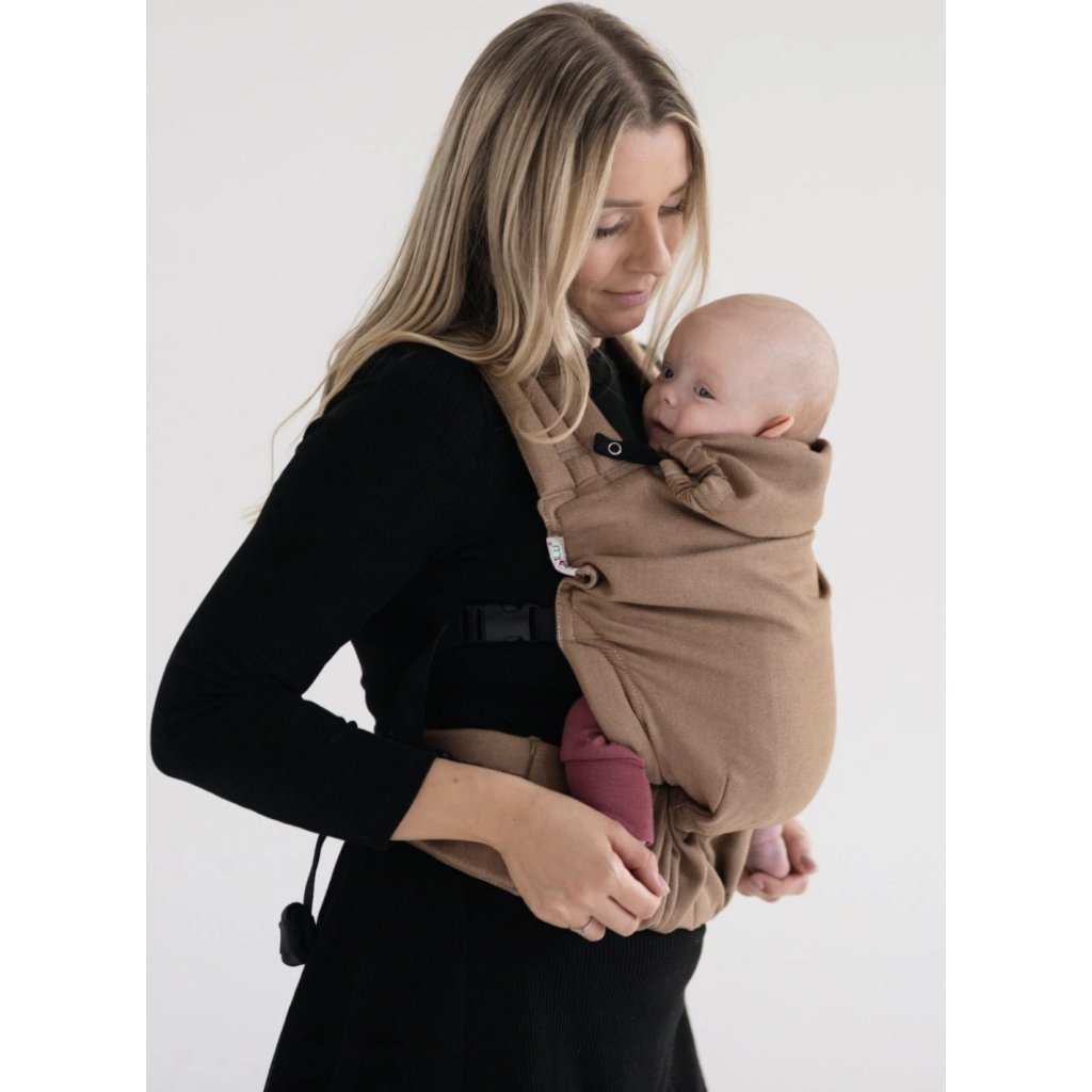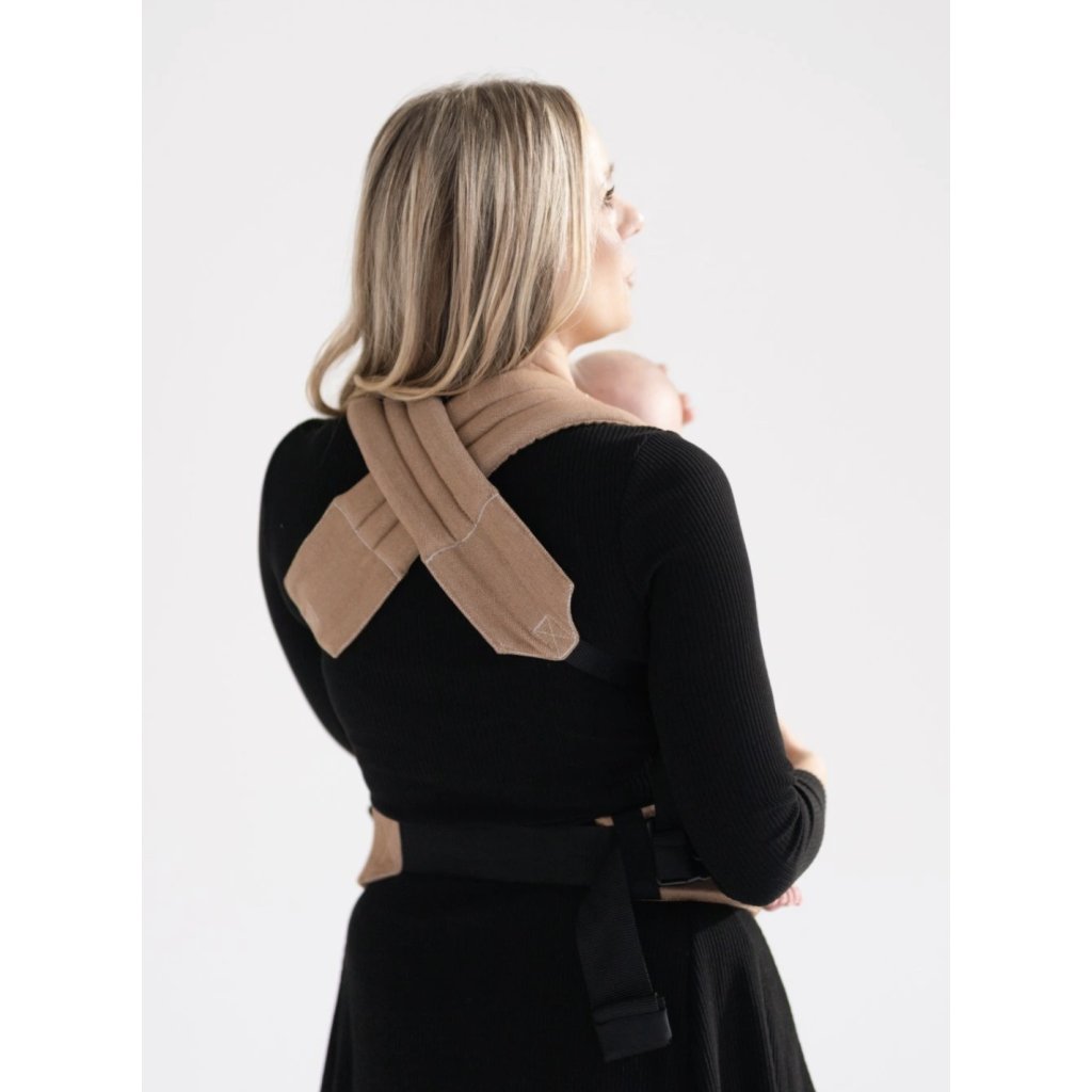 Bezpečnostní jištění bederního pásu je řešeno gumičkou, zámkem spony a brzdou na popruhu. Šířka sedu se nastavuje suchým zipem, výška zádové opěrky přezkami. Ramenní popruhy se zapínají do kříže, takže se váha rovnoměrně rozloží a nošení je pohodlné i při delších procházkách.. Nosítko má kapucku, kterou je možné srolovat jako opěrný límec pro jištění hlavičky.