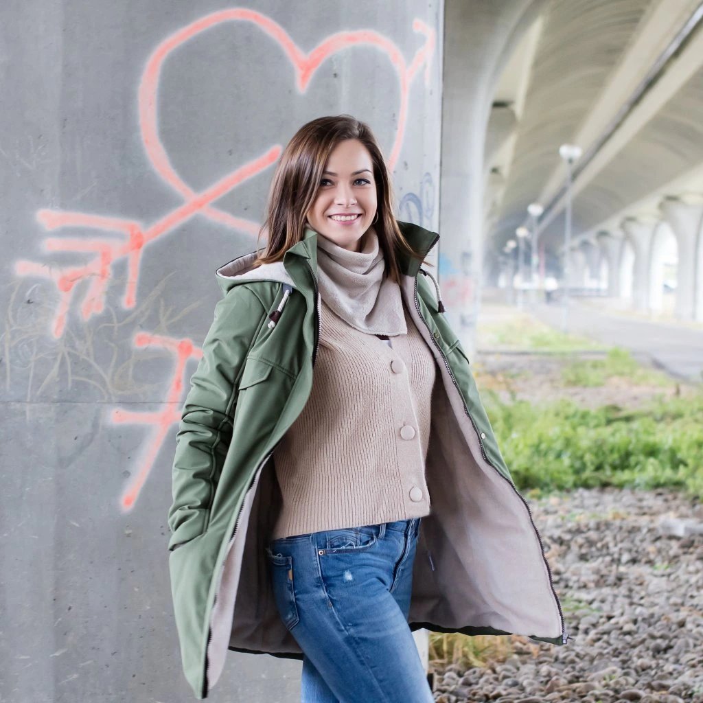 Bunda je použitelná i bez vsadky na běžné nošení bez děťátka.